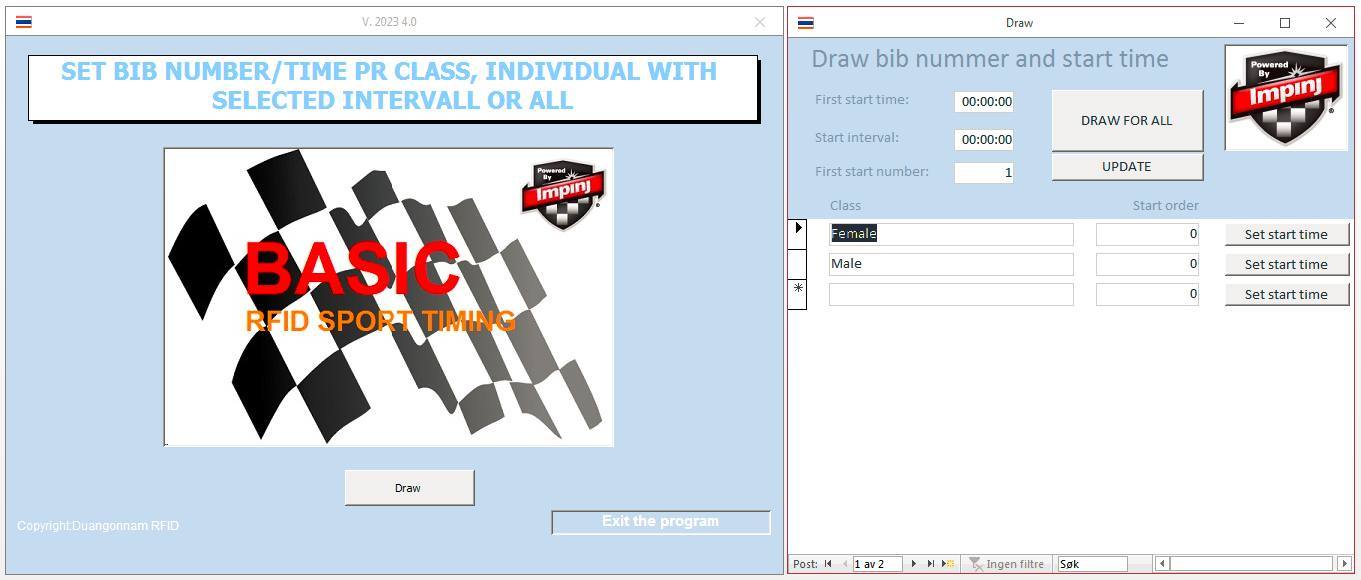 Download Access 2016 Runtime for free from microsoft to use our database software. Download our software and unzip to C:/Basic_Sport_Timing/ . To use our Exel software you must have Excel innstalled on your computer, remember to enable macros. Set main local language on your computer to ENGLISH.